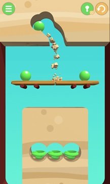 4.使用物体的速度等,这样可以使更多的绿球进入坑中!